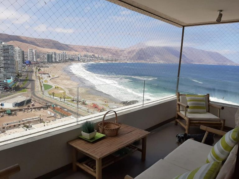 Vendo amplio y cómodo departamento amoblado con dos terrazas vista al mar ubicado en el sector habitacional exclusivo Playa Cavancha de la ciudad de Iquique.